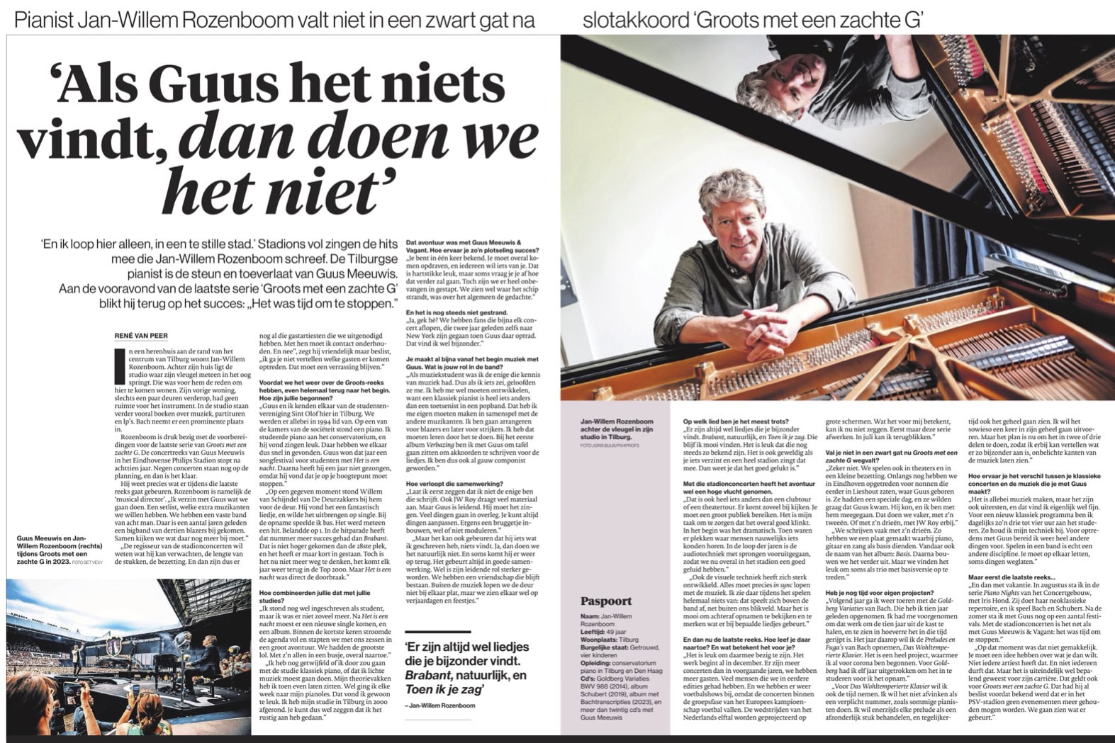 Wanneer zanger Guus Meeuwis in overvolle stadions optreedt, brult iedereen mee met Brabant en ’t Dondert en ’t Bliksemt. De liedjes zijn muzikale handtekeningen van Jan-Willem Rozenboom, die al jaren als pianist en componist samenwerkt met Guus Meeuwis.